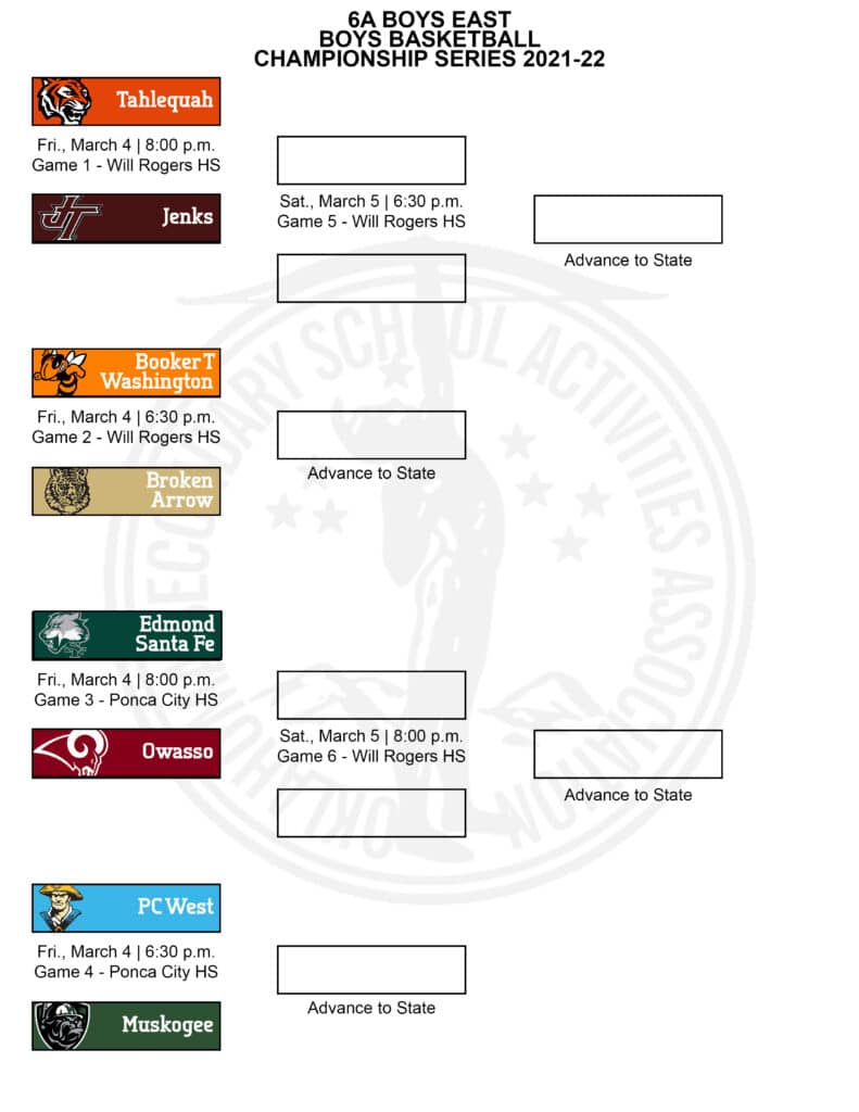 The winner of Muskogee versus Putnam City West will punch their ticket to the State Tournament. The loser will face the winner of Edmond Santa Fe – Owasso match-up with that game taking place at 8:00 p.m. on Saturday, March 5 at Will Rogers High School in Tulsa, Okla.