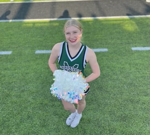 It started out as just a fun thing to do but tumbling turned into cheer and now Muskogee High senior RayLeigh Yocham is ready for her final year to do that. “I grew up playing softball and when I would go to my position in the outfield, I would do some tumbling, so my mom got me into tumbling classes. I had some older cousins that were cheer leaders, so I quit softball and used my tumbling skills to get into competitive cheer when I was seven or eight. On the one hand it was nice because mom took me to practice and to all of the competitive meets. We traveled all around the country and had a lot of quality time together,” said RayLeigh. “But that last year the travel just got to be too much and so I quit my sophomore year to concentrate on school cheer and academics. That year the football team won the state championship and that was certainly the highlight of my high school career. To be honest, I really didn’t understand football, but the excitement of that game got me more into it.” Then came a setback. “We were doing a cheer stunt at the pep rally before the first football game last year. I was the backspot and the girl we were holding came down hard on my shoulder. I couldn’t do anything during football and finally had to have surgery done in November. The damage was more extensive than we knew, and it took me until just a few weeks ago to get released to cheer again. My goal this year is to regain all of my strength and skills and be a part of our OSSAA competition this fall and be a good leader. I like helping younger kids because I remember when I first got to high school, I was really shy and quiet, so I want to help our younger kids who are like that get adjusted.” And RayLeigh is all set for what lies ahead after high school. “I’m the only MHS kid enrolled in the Classroom to Clinicals program at Connors this fall so I’ll get my pre-nursing certificate when I graduate, and a year and half later hopefully get my RN license.”