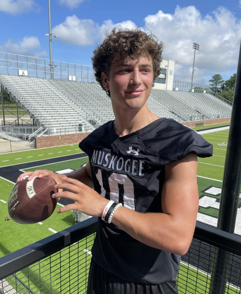 Muskogee will have several holes to fill going into next year but an important spot they won’t have to worry about is quarterback where Kason Delgado will return after passing for over 2100 yards and scoring 28 touchdowns this year.